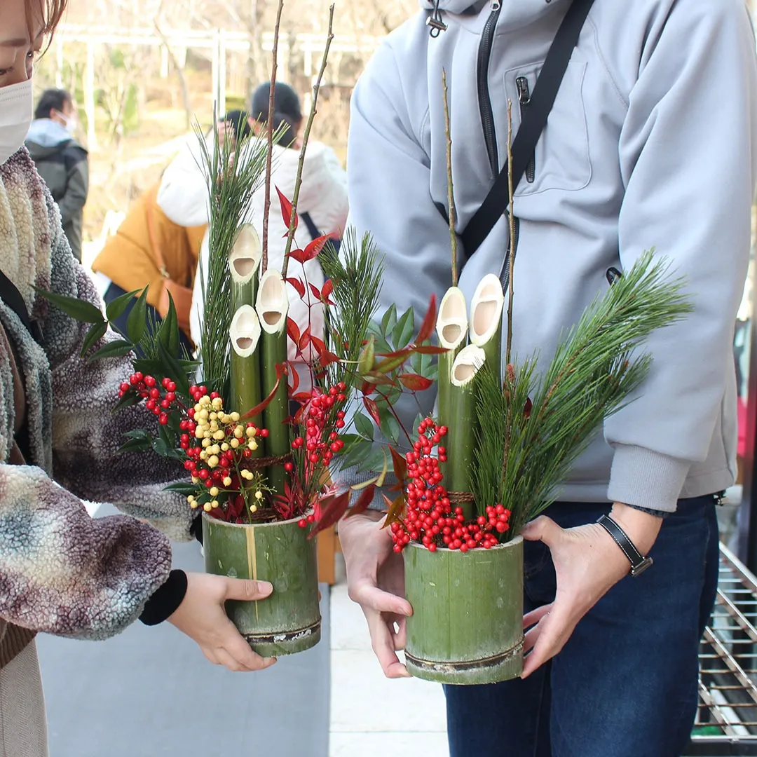 芽でたまつり2025 2025/12/05 芽でたまつり 開催期間 2025年12月28日(日)~12月30日(火) 10時~17時(※一部イベントは16時まで) “今年1年の感謝を込めて、来年も良い年を迎えられますように。” 年末の締めくくりにふさわしい“お得”と“おいしさ”が詰まった今年最後のイベントを今年も開催いたします! おせち特価販売・おせち食材福袋の販売 ■販売場所:総合ショップ おせち製造メーカーである銀の森ならではの、年末恒例のお得な「おせち」特価販売を今年も実施! いろいろなおせちの食材が小分けになって詰め合わされた限定の「福袋」も数量限定で登場いたします。年末だけの特別な蔵出し企画をどうぞお見逃しなく。 ※画像はイメージです。※各日数量限定・なくなり次第終了。 門松づくり体験 & 薪販売 毎年人気のミニ門松づくり体験が今年も登場。 一年中青々と茂る“松”、力強い生命力の“竹”、難を転ずると言われる“南天”を使用し、オリジナルの門松をお作りいただけます。新年の準備にぴったりのワークショップです。 体験価格:2,000円(税込)/1個 お団子屋さん ■販売場所:総合ショップ前の売店 毎年大好評の「銀の森のお団子屋さん」が、芽でたまつり限定で今年もオープン。 もちもち食感の串団子、ミニたい焼き、新登場の牛すじ煮込などのグルメに甘酒ドリンクなど、寒い季節に嬉しい温かなメニューをご用意いたします。 串団子 150円(税込) ミニたい焼き 150円(税込) 牛すじ煮込 500円(税込) ビッグ福笑い 無料体験イベント 毎年お子さまに人気の大型福笑いが今年も登場。 大きな台で楽しむ福笑いは思わず笑いがこぼれる体験。遊んだあとはぜひ記念撮影もお楽しみください。 今年は【すごろくスタンプラリー】も開催予定です。 招き猫絵付け体験 3日間限定ワークショップ 幸福や商売繁盛を招く縁起物として親しまれてきた「招き猫」。 世界にひとつだけのオリジナル招き猫を、ご自身の手で絵付けしてみませんか?新年を彩る置物としてぴったりです。 体験価格:800円(税込)/1個(数量限定) 祭り